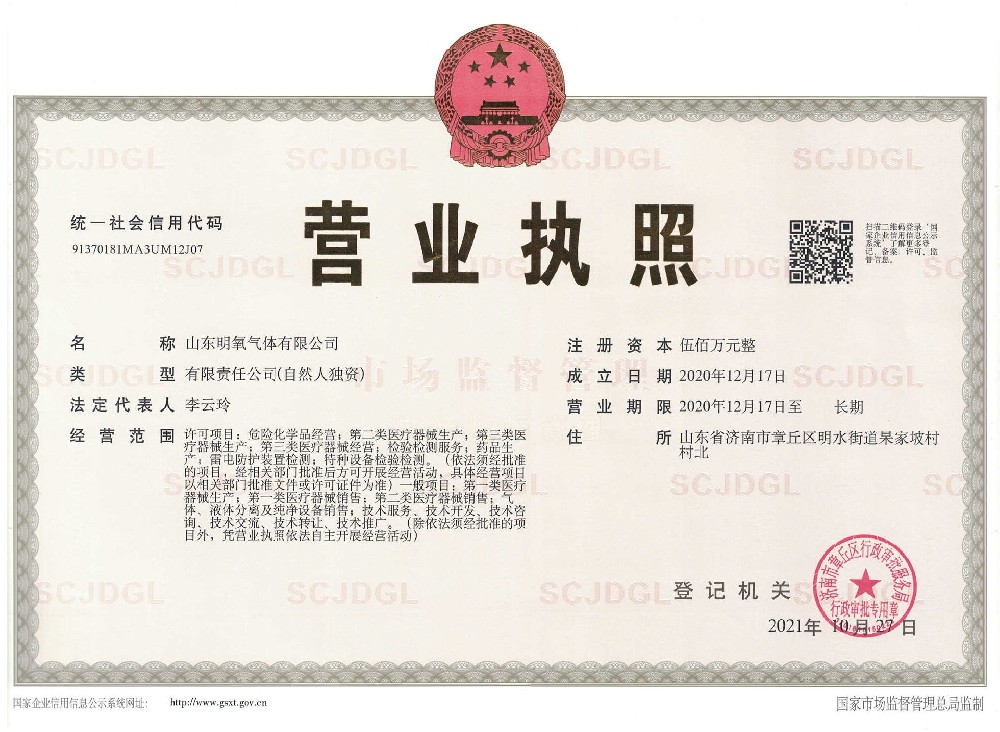 ??? 山東明氧氣體有限公司的前身為始建于1993年的章丘市明水氧氣廠,2020年12月企業(yè)由民營(yíng)獨(dú)資轉(zhuǎn)型升級(jí)為山東明氧氣體有限公司,企業(yè)進(jìn)入新的發(fā)展階段。公司位于山東省濟(jì)南市章丘區(qū)明水街道杲家坡村村北,占地面積4000平方米,注冊(cè)資金500萬(wàn)元,固定資產(chǎn)投資3000萬(wàn)元,主要經(jīng)營(yíng)項(xiàng)目為醫(yī)用氧氣、工業(yè)氧氣、氮?dú)狻⒏呒兊獨(dú)狻鍤狻⒏呒儦鍤狻⒏呒兒狻⒍趸肌⒒旌蠚怏w等各種工業(yè)氣體、高純氣體、混合氣體的充裝銷售、各類氣瓶的銷售、安全閥校驗(yàn)、鋼質(zhì)無(wú)縫氣瓶的檢驗(yàn)等。